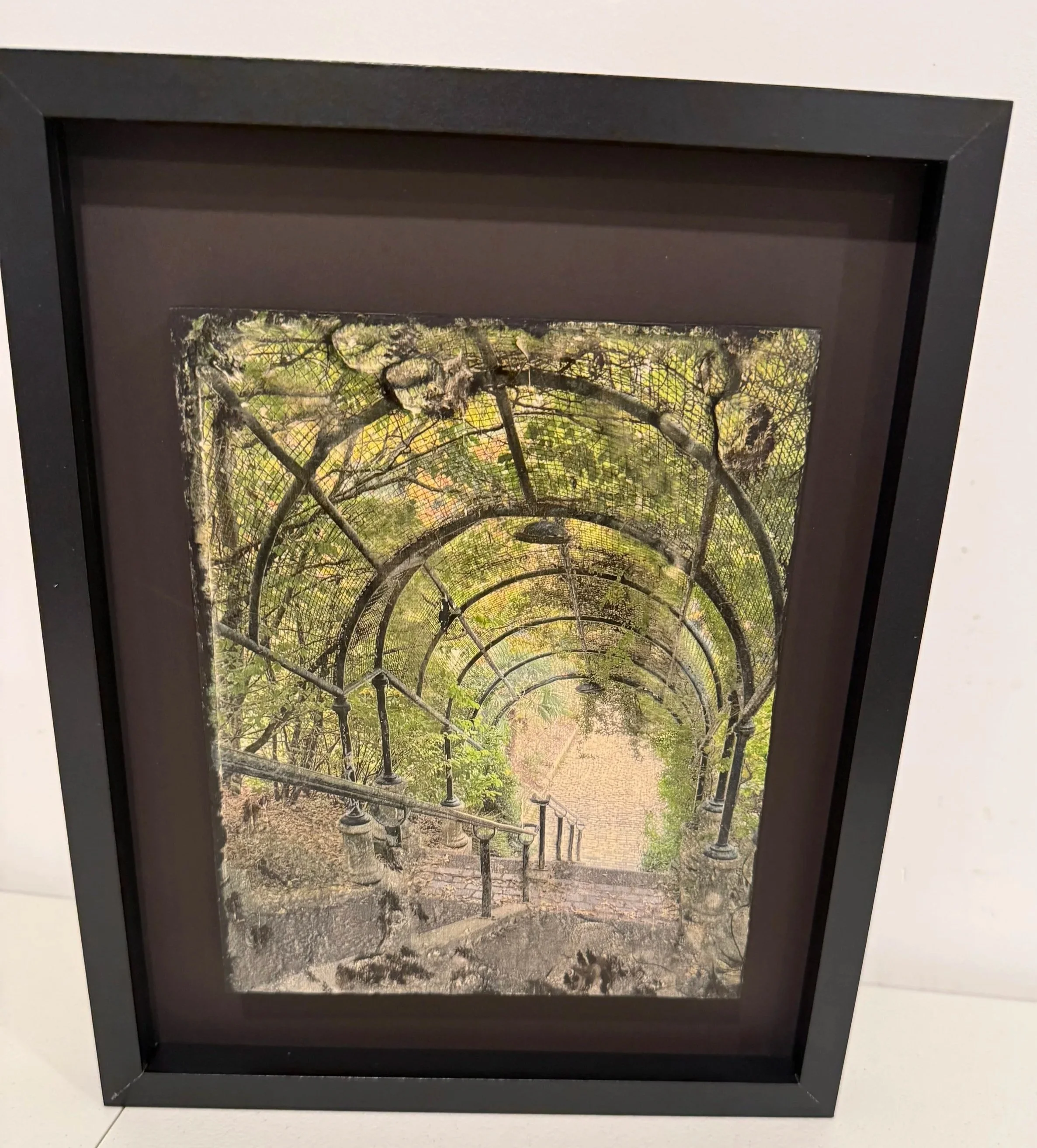 A photo transfer is a handcrafted photographic process in which an original image is physically transferred onto another surface, allowing the photograph to merge with the material's texture. Unlike traditional prints, the image is not simply placed on top of the surface; it becomes part of it.